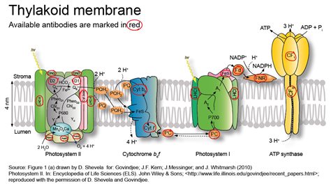 光合色素吸收光能后,把能量聚集到反應(yīng)中心(葉綠素a分子),引起電荷分離和光化學(xué)反應(yīng)。一方面將水氧化,放出氧氣;另一方面把電子傳遞給輔酶II(NADP+),將它還原成NADPH,其間經(jīng)過一系列中間載體。光合電子傳遞的主要載體有質(zhì)體醌(PQ)、細胞色素b6(Cytb6)、質(zhì)藍素(PC)、鐵氧還素(Fd)、Fd-NADP還原酶(FNR)。目前普遍接受的光合電子傳遞途徑為Z形方案,認為光合電子傳遞鏈?zhǔn)怯?/span>PSI和PSII以及連接兩個光系統(tǒng)的一系列電子載體組成,電子傳遞鏈上各個載體按其氧化還原電位高低,成Z形串聯(lián)排列。電子傳遞載體相關(guān)抗體見下表(僅列舉部分產(chǎn)品):