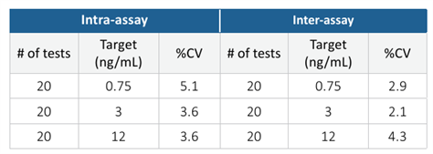 ? 極高的靈敏度 LOD約為0.06 ng/ml,LLOQ約為0.31 ng/ml;