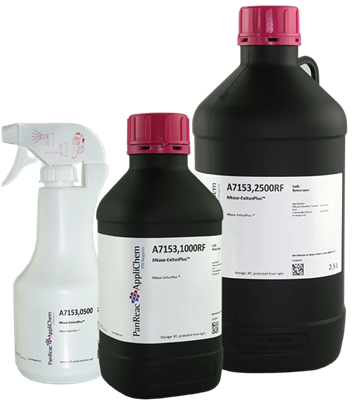在mRNA疫苗的生產以及其他與mRNA相關的生物制品中,RNase污染的清除尤為重要,德國Applichem研發(fā)的RNase-ExitusPlus?是一種非堿性、無腐蝕性且無致癌性的新型RNase清除液,它對RNase污染物具有很好的清除性能,是適用于任何表面的即用型RNase污染清除液,可用于實驗室表面的清潔,如實驗操作臺、電泳設備、移液器和反應管等。