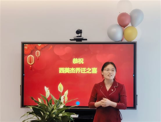 為了配合國家的疫情防控政策,公司在總部辦公室進(jìn)行了簡短的慶祝儀式??偨?jīng)理助理張柳主持會(huì)議,部分員工代表參加,公司董事長晏曉梅、公司總經(jīng)理房浩霞分別致辭,慶祝公司喬遷之喜,肯定了行政部門以及參與辦公室裝修、遷址等各項(xiàng)工作的同事們的努力付出。疫情當(dāng)下,再次表達(dá)了對所有員工多年如一日的執(zhí)著堅(jiān)守的感謝,正是有你們的付出和努力,才使得公司各項(xiàng)業(yè)務(wù)能夠有條不紊的開展。最后,重點(diǎn)感謝西美杰所有的業(yè)務(wù)伙伴,感謝16年的相守和肯定,未來我們將全力以赴,定不負(fù)所望。