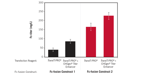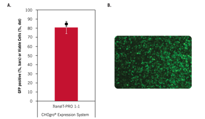 圖1. 單獨使用Mirus CHOgro? High Yield Expression系統(tǒng)中的轉染試劑(TransIT-PRO? 轉染試劑),也有著高水平的轉染效率。