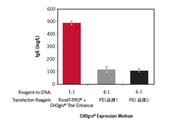 圖5. TransIT -PRO?轉染試劑搭配CHOgro? Titer Enhancer,相較于PEI轉染體系,CHO細胞IgG的表達量可提高約3倍
