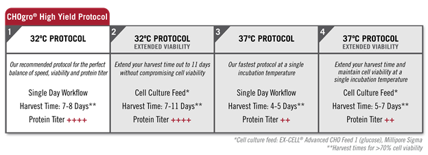 圖6. CHOgro? High Yield Expression System的多種細胞培養(yǎng)方案