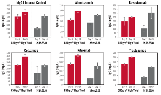 Mirus CHOgro? High Yield Expression System針對不同類型蛋白/抗體的表達,有著更高產(chǎn)量