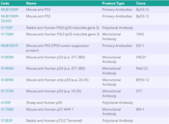 西美杰代理的Nordic-MUbio品牌提供了大量與p53蛋白相關(guān)的抗體產(chǎn)品,這些產(chǎn)品在癌癥領(lǐng)域的研究中發(fā)揮著重要作用。這些抗體的研究方向涵蓋了細(xì)胞周期、癌癥、細(xì)胞結(jié)構(gòu)、腫瘤學(xué)、細(xì)胞凋亡、感染性疾病、CD maker、細(xì)胞粘連、酶、細(xì)胞外基質(zhì)和干細(xì)胞等多個領(lǐng)域。為了方便客戶進(jìn)行搜索,小編整理了部分與p53蛋白相關(guān)的抗體產(chǎn)品列表: