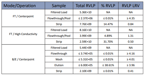 Table2. LRV Determinations for Affinity Resin Run Spiked with MVM and MVM-MVPs
