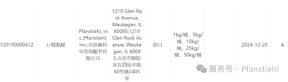 “ 熱烈祝賀Pfanstiehl品牌注射級(jí)精氨酸A-170 CDE注冊(cè)登記號(hào)F20190000412已激活!”Pfanstiehl新年喜訊頻傳,注射級(jí)精氨酸A-170 CDE登記號(hào)F20190000412激活了。Pfanstiehl品牌注射級(jí)精氨酸A-170,秉承一貫高品質(zhì)理念,具有超高純度,超低內(nèi)毒素,超低金屬殘留的特點(diǎn),單獨(dú)檢測29種金屬離子,并且新增DNA,RNA,DNA酶,RNA酶和脂肪酶,亞硝酸鹽等多項(xiàng)質(zhì)量指標(biāo)的檢測,符合多國藥典規(guī)定(USP, EP, JPE, ChP),可用于生物治療性藥物和疫苗的生產(chǎn)。· 產(chǎn)品名稱: L-Arginine, High Purity, Low Endotoxin,