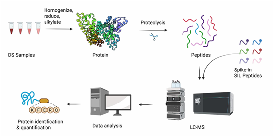 While the ELISA HCP detection method can assess overall HCP levels, it cannot identify specific types of lipases, making it difficult to precisely evaluate process-related risks. To address this issue, Cygnus Technologies has developed a targeted proteomics analysis method based on liquid chromatography-tandem mass spectrometry (LC-MS/MS) – the CHO 6xLipase? MS Assay. This method utilizes Parallel Reaction Monitoring (PRM) technology and Stable Isotope-Labeled peptides (SIL) to achieve absolute quantification of six CHO-derived HCP lipases known to cause Tween degradation::